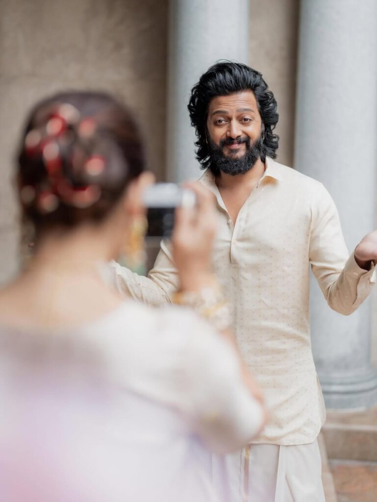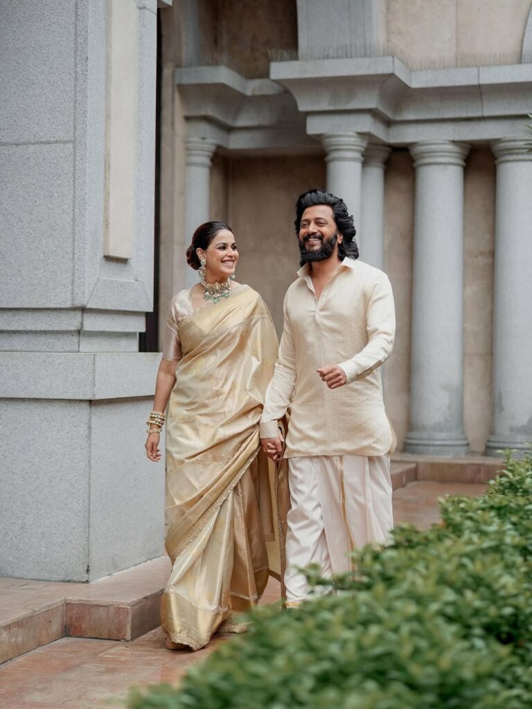 • Riteish’s Charm: With his classic festive look, Riteish complemented her perfectly, creating picture-perfect couple goals.